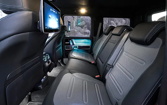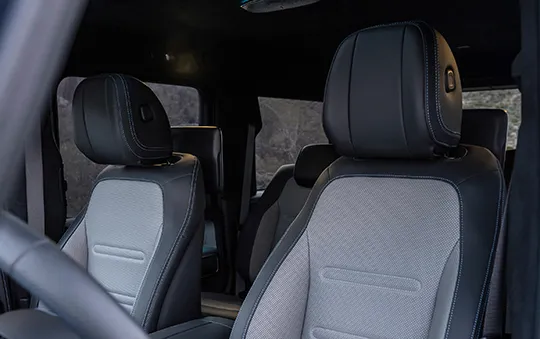 또한, 오프로드 주행을 위한 특별한 기능들도 탑재되어 있습니다. 최대 85cm 깊이의 물을 건널 수 있으며, 35도 경사도까지 안정적으로 주행할 수 있습니다. 'G-Roar' 사운드 시스템을 통해 전기차임에도 V8 엔진 특유의 웅장한 사운드를 즐길 수 있습니다.