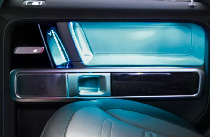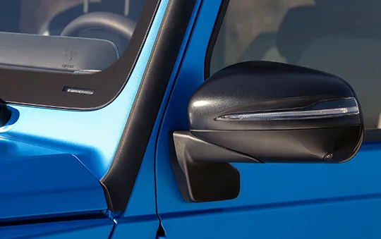 전기 G바겐은 기존 모델의 강인한 외관 디자인을 유지하고 있습니다. 사각형의 박스 형태 차체, 둥근 헤드라이트, 그리고 뚜렷한 펜더 등 G바겐 특유의 디자인 요소들이 그대로 유지되었습니다. 다만, 전기차답게 프론트 그릴의 디자인이 약간 변경되고, LED 조명이 더욱 강조되었습니다.
