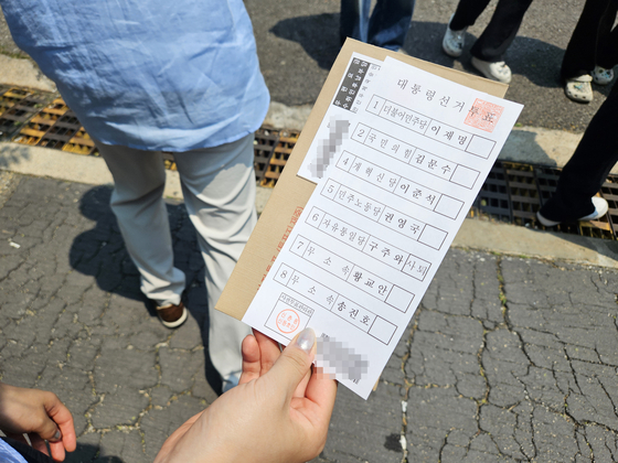 한 유권자는 투표용지와 봉투를 들고 인근 식당에서 점심을 먹고 돌아와 투표를 완료했습니다.
