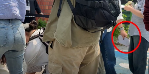 투표소 밖에서 투표용지와 봉투를 들고 사진을 찍는 모습이 유튜브 생중계에 포착되어 논란이 확산됐습니다.
