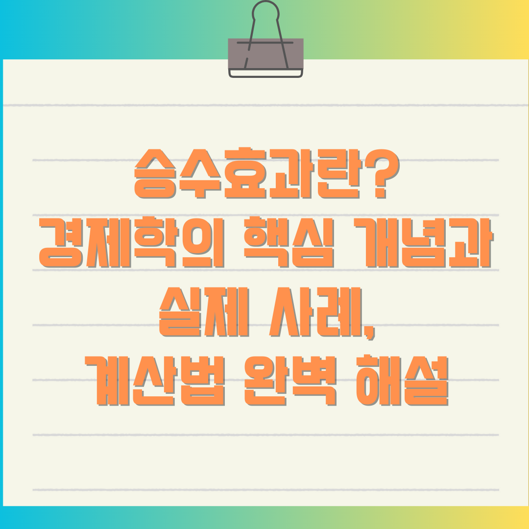 "승수효과는 정부지출, 투자, 수출 등 다양한 경제정책의 효과를 극대화할 수 있는 핵심 개념입니다."
