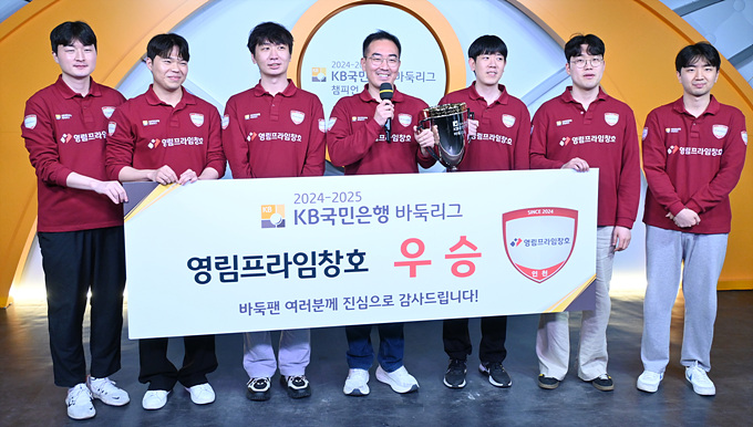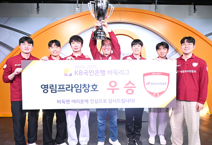 2024-2025 KB국민은행 바둑리그 챔피언결정전 2차전에서 영림프라임창호가 마한의 심장 영암을 3-0으로 완파, 시리즈 전적 2-0으로 통합 우승을 확정지었습니다. 1차전 역시 3-0 완승이었기에, 챔피언결정전 6판 전승이라는 대기록을 세웠습니다.