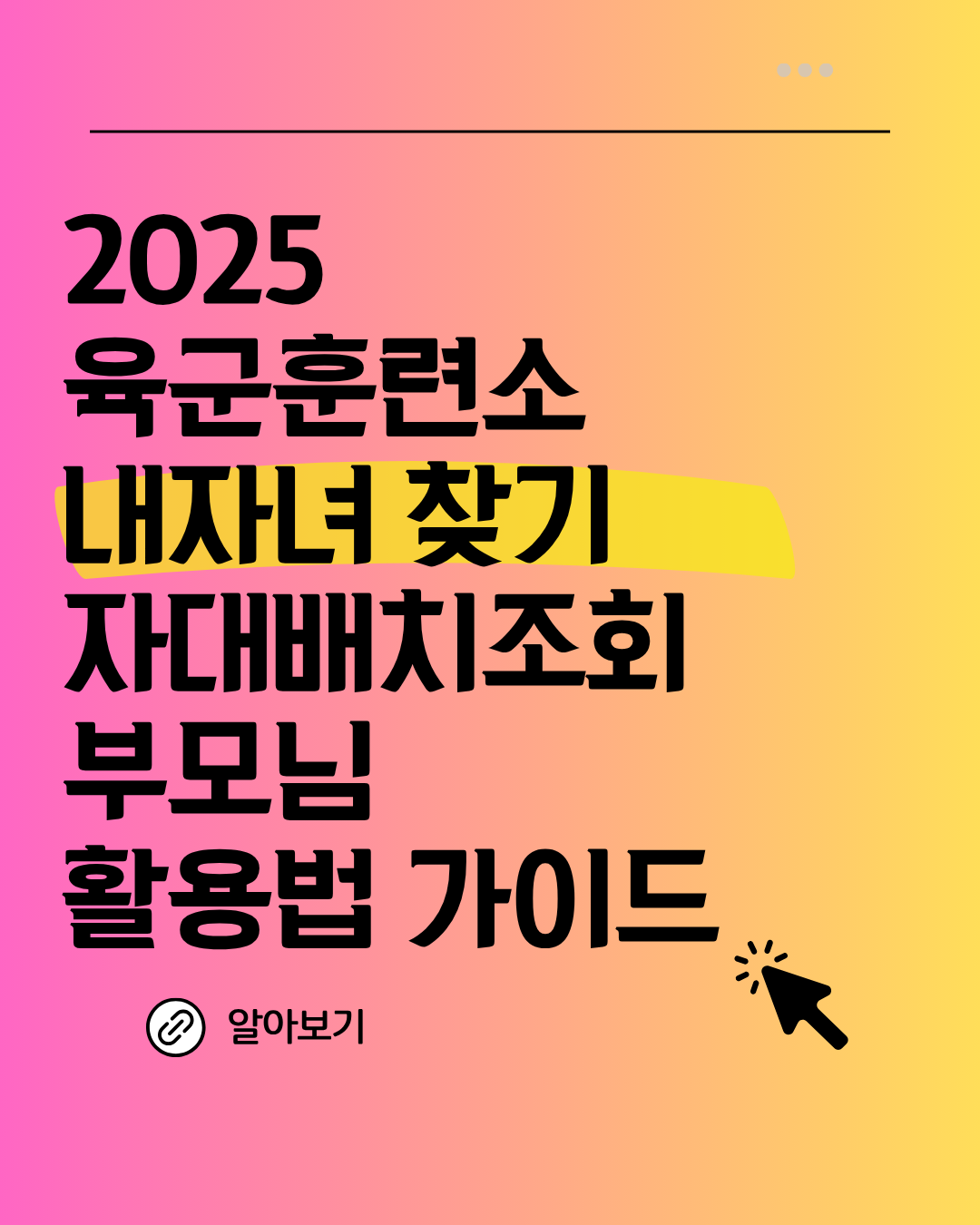 육군훈련소 '내자녀 찾기'와 '자대배치조회'는 부모님과 가족, 연인 등 보호자들이 자녀의 군 생활을 실시간으로 확인하고 응원할 수 있도록 만든 공식 서비스입니다. 이 글에서는 공식 사이트를 통한 정확한 활용법, 자주 묻는 질문, 실전 팁까지 모두 정리했습니다. 복잡해 보이지만, 한 번만 따라 하면 누구나 쉽게 사용할 수 있습니다!