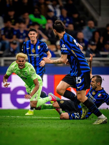 경기는 시작부터 끝까지 숨 쉴 틈 없이 전개됐다. 인테르(인터 밀란)는 라우타로 마르티네스의 선제골과 하칸 찰하노글루의 페널티킥으로 전반을 2-0으로 마쳤다. 바르셀로나는 후반 에릭 가르시아, 다니 올모의 연속골로 동점을 만들었고, 경기 막판 래피냐가 추가골을 넣으며 합계 역전에 성공했다.