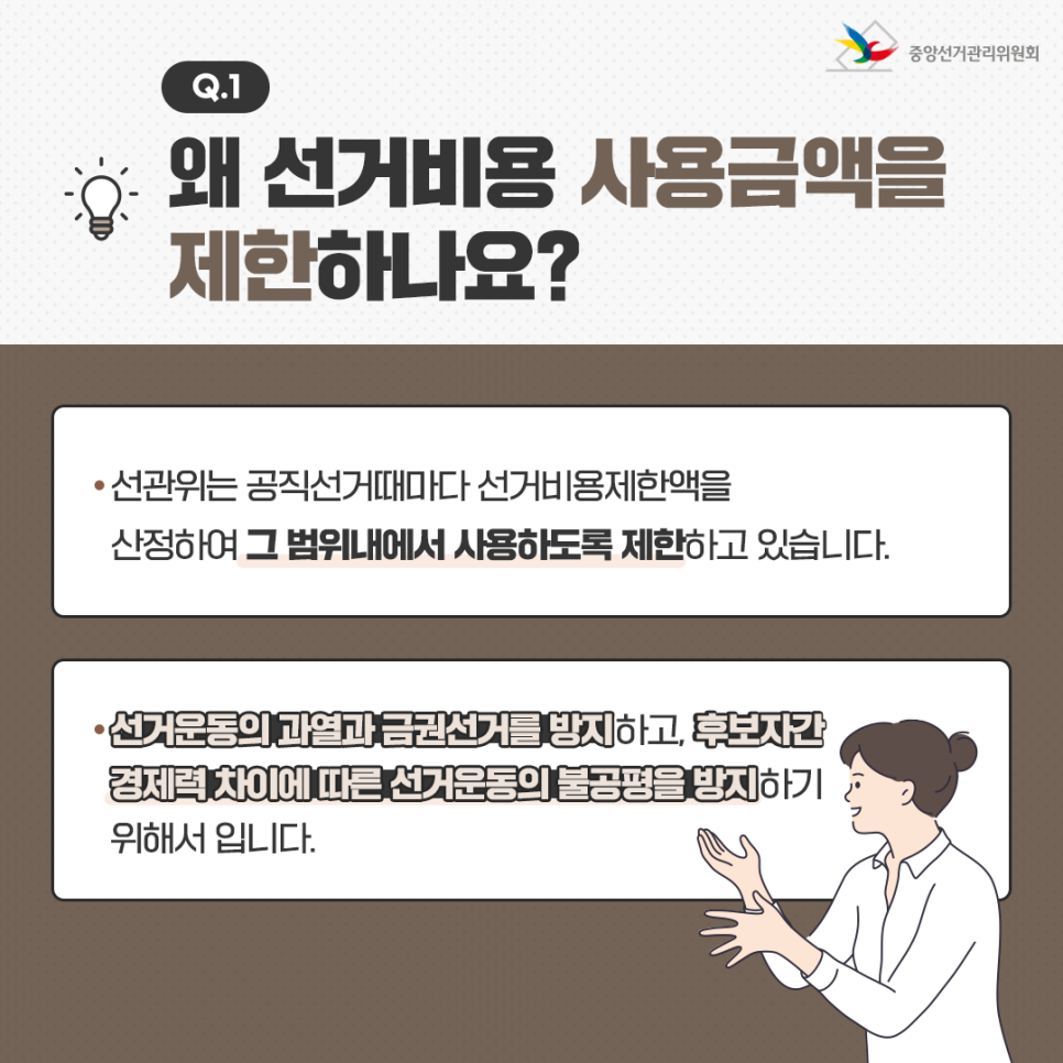 "선거비용 제한액은 후보자 간 형평성과 공정한 경쟁을 보장하는 중요한 제도입니다." "막대한 비용이 드는 대선, 국가가 일정 부분 보전해주는 이유는 선거의 공공성과 민주주의 실현을 위한 것입니다."