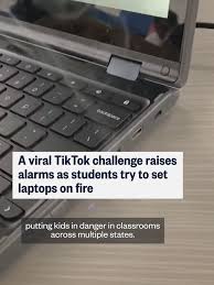 크롬북 챌린지, 학교 화재, 틱톡 챌린지, 전기 합선, 학생 안전, 소셜미디어 트렌드, 크롬북 파손, 학교 기물 훼손, 화재 위험, 소셜미디어 과몰입
