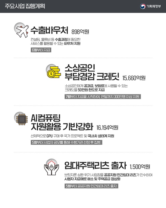 | 경기 진작 | 민생회복 소비쿠폰, 지역사랑상품권 추가 발행, 건설경기 활성화 등 | 15조 2,000억 원 |