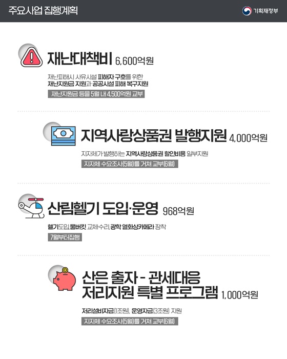 | 세입 경정 | 세수 부족 예상분 보강 | 10조 3,000억 원 |