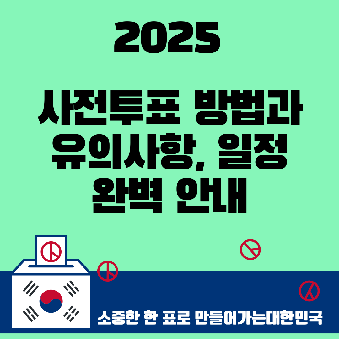 2025년 제21대 대통령선거에서 사전투표는 시간과 장소의 제약 없이 누구나 쉽게 참여할 수 있는 열린 제도입니다. 신분증만 있으면 전국 어디서나 투표가 가능하고, 별도의 신청도 필요 없습니다. 사전투표 유의사항을 꼭 숙지하고, 바쁜 일정 속에서도 소중한 한 표를 행사해 대한민국의 미래를 함께 만들어가시기 바랍니다.
