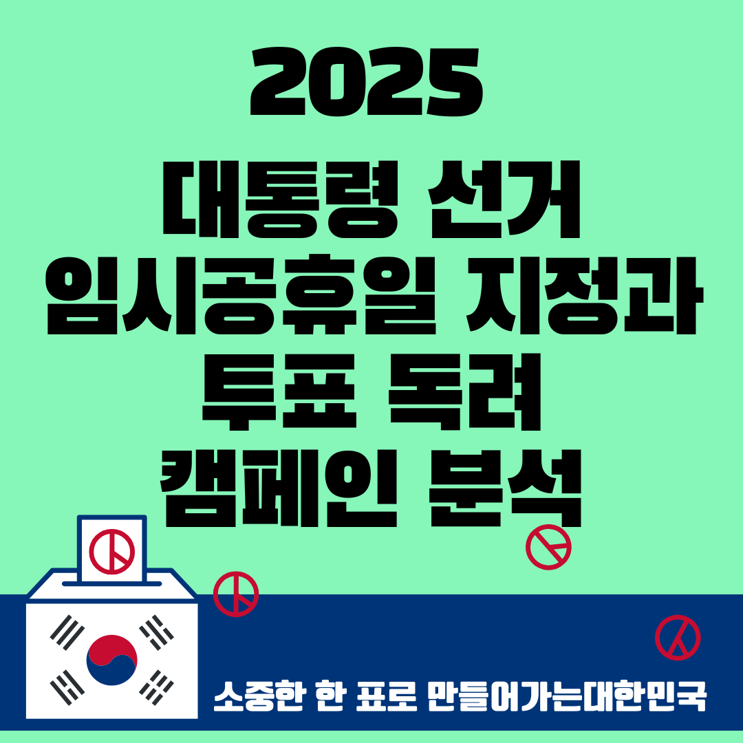 2025년 대선에서도 임시공휴일 지정과 다양한 캠페인이 유권자의 투표 참여를 촉진할 것으로 기대됩니다. 특히, 청년층과 직장인, 주부 등 평소 투표 참여가 낮았던 계층의 투표율이 크게 높아질 전망입니다.