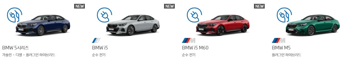 i 시리즈: BMW의 전기차 브랜드인 i 시리즈는 미래 지향적인 디자인과 첨단 전기 파워트레인을 특징으로 합니다. 주요 모델로는 i3, i4, iX3, iX 등이 있습니다.