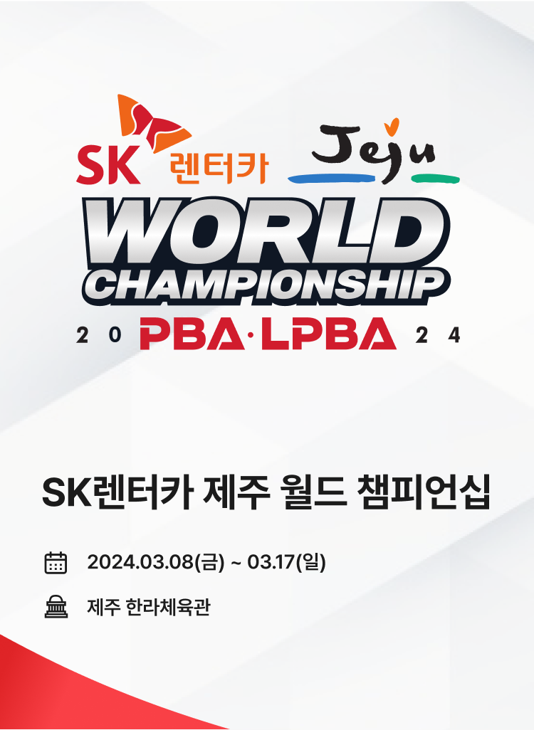 2025년 3월 8일부터 17일까지 제주특별자치도 제주시 한라체육관에서 개최된 *SK렌터카 제주특별자치도 PBA-LPBA 월드챔피언십*은 프로당구 시즌의 대미를 장식하는 왕중왕전으로, 세계 최정상급 선수들이 모여 치열한 경쟁을 펼쳤습니다. 이번 대회는 총 상금 6억 원 규모로, 남자부(PBA) 4억 원, 여자부(LPBA) 2억 원이 걸려있어 선수들에게 큰 동기부여가 되었습니다.